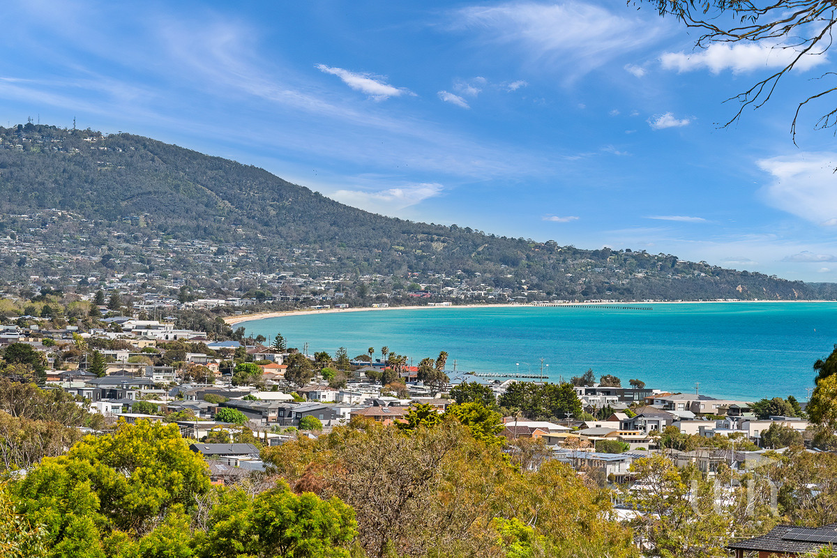 Bathed in natural light, wall-to-wall windows frame panoramic views stretching across Port Phillip Bay to Arthurs Seat, Red Hill and Martha Cove marina. A wraparound deck captures this extraordinary outlook, while the stylish kitchen with Swedish-style veneer cabinetry, walk-in pantry, pyrolytic oven and Sirius downdraft induction cooktop anchors the heart of the home.