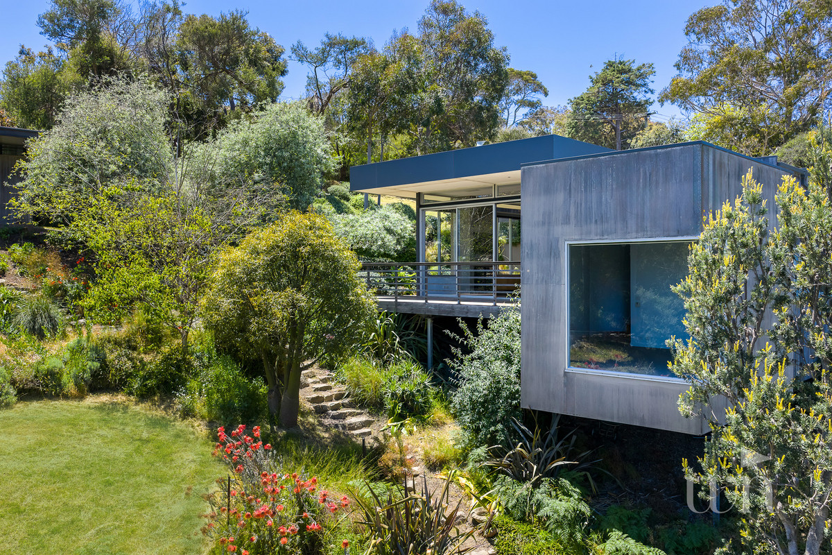 Hidden amongst the trees and designed by renowned architect Kirstin Thompson, this completely unique residence celebrates individuality, character, and a playful yet refined approach to mid-century design. Nestled among beautiful, mature gardens, the home sits on nearly an acre (approx.) with potential to subdivide, offering a rare opportunity in a coveted location close to Mount Martha Village, the golf course, and the peninsula’s iconic beaches.